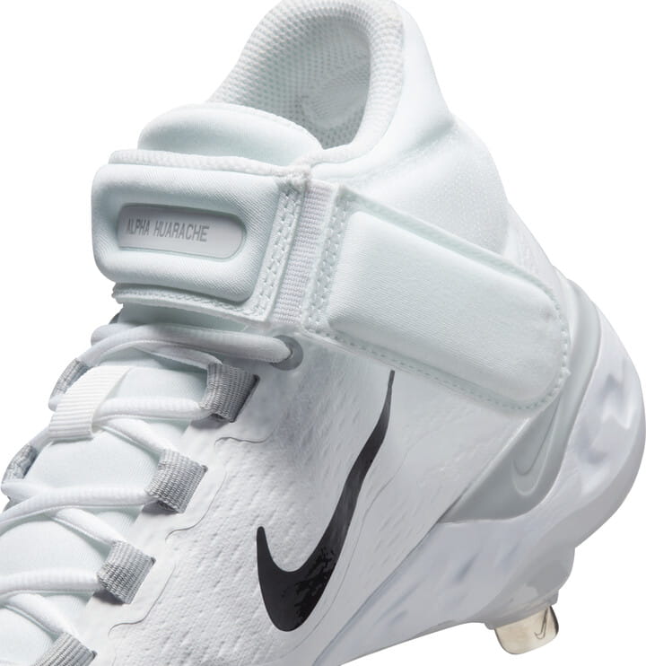 A mesh window in the upper harkens back to the iconic Nike Huarache from the basketball world to help create lighter weight compared to its baseball predecessor.
