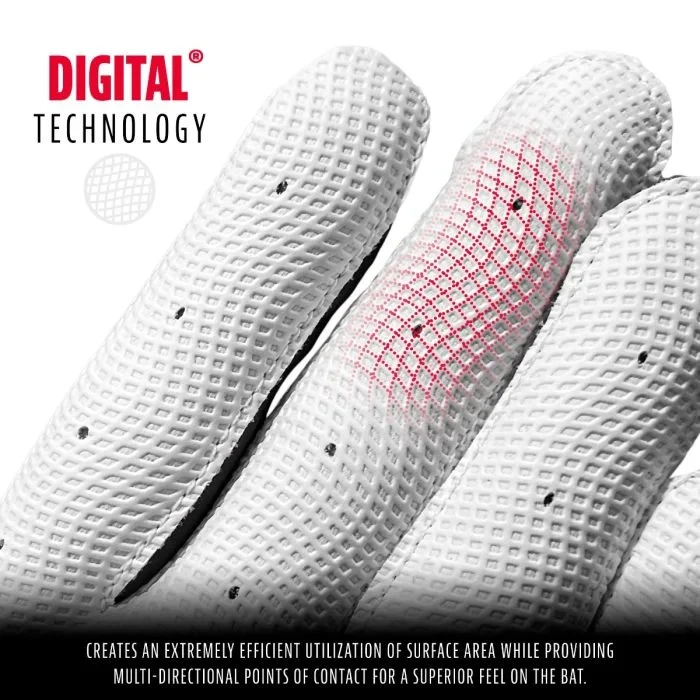 Technologia Tri-Curve sprawia, że rękawiczki zachowują naturalny kształt dłoni, zapewniając idealne dopasowanie i swobodę ruchów. Charakterystyczny motyw cyfrowego camo nadaje im sportowy i nowoczesny wygląd – dokładnie taki, jaki noszą zawodnicy MLB.