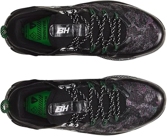 Under Armour Men's Harper 8 Low ST Baseball Cleats deliver comfort, traction, and standout style. The low-cut design allows freedom of movement, while the cleated outsole provides excellent grip on the field. Black, silver, green, and purple colors create a bold athletic look.